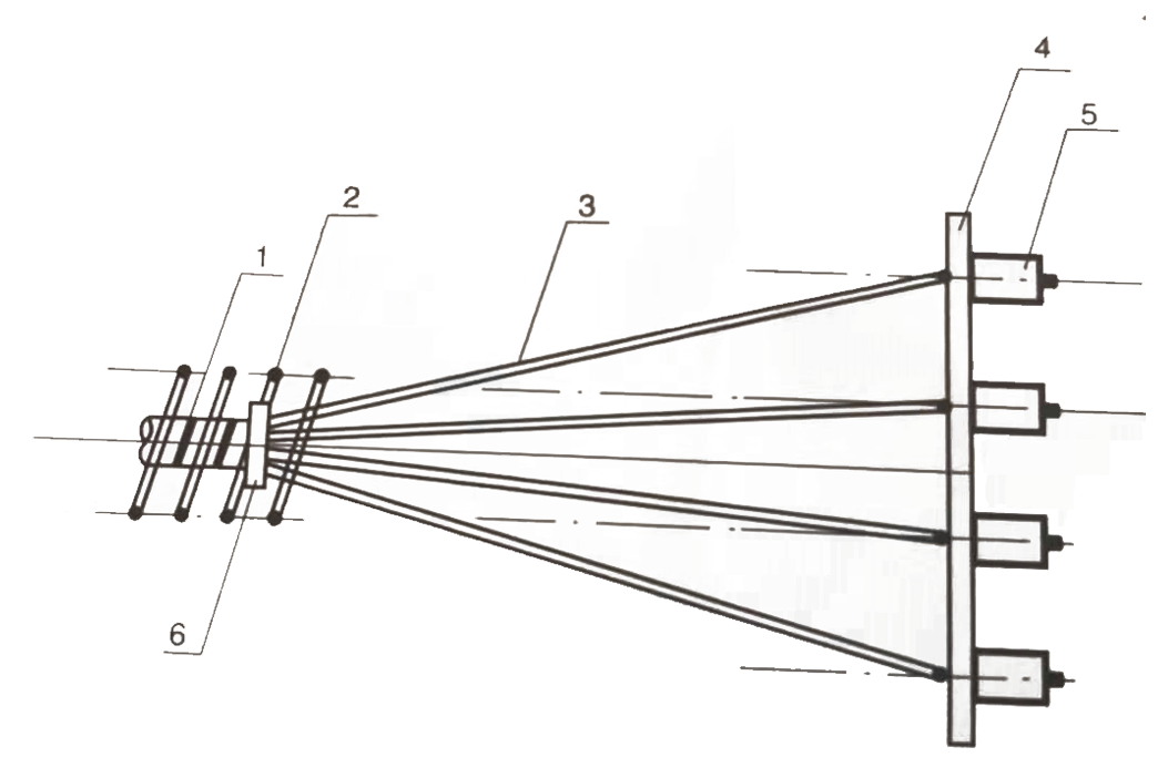 1、波紋管 2、螺旋筋 3、鋼絞線 4、固定端墊板 5、擠壓錨 6、約束環(huán)