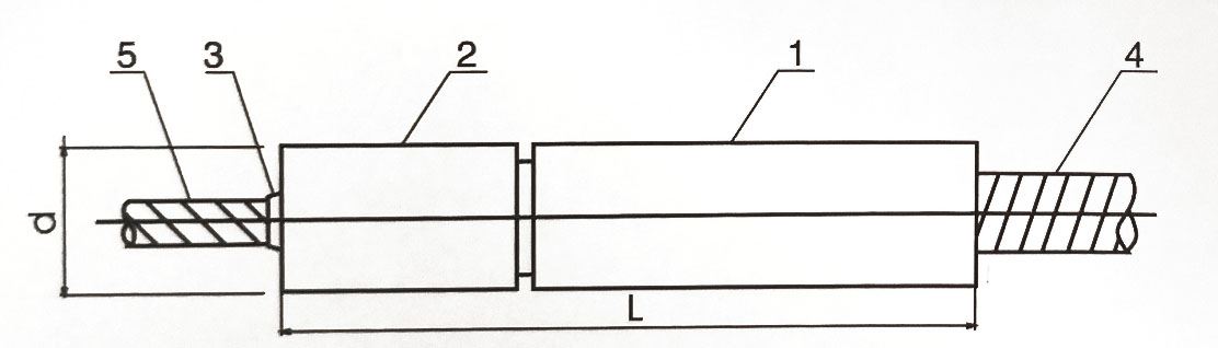 1、鏈接軸 2、連接套 3、夾片 4、精軋螺紋鋼 5、鋼絞線